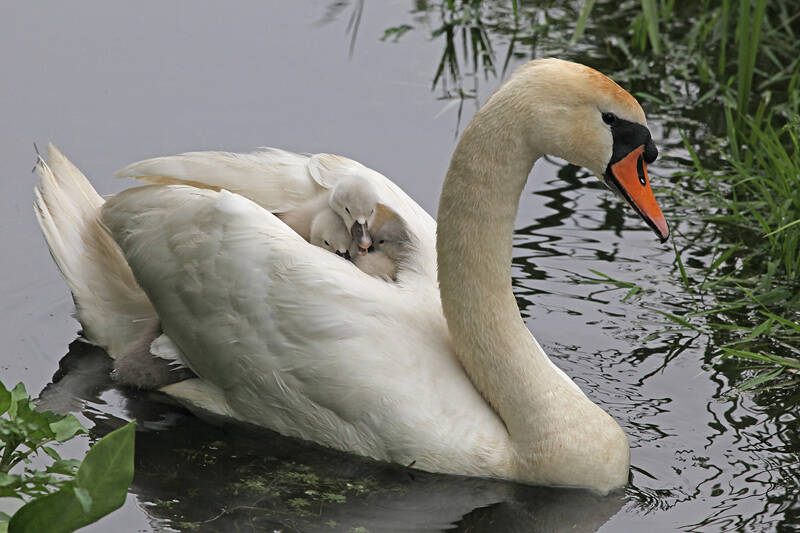 De jonge zwanen kunnen inmiddels zelf grondelen.