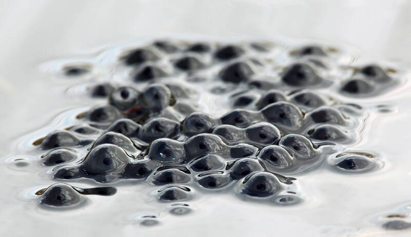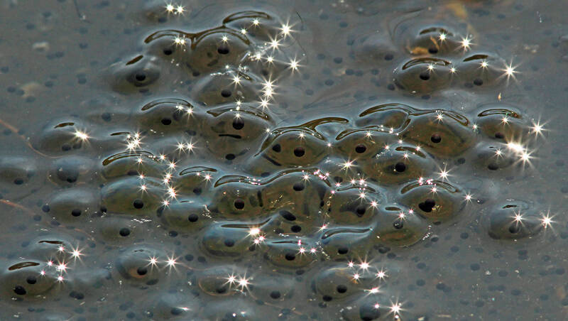 De eiersnoeren van de pad zijn 2 tot 5 meter lang en bevatten 3000 tot 6000 eitjes.