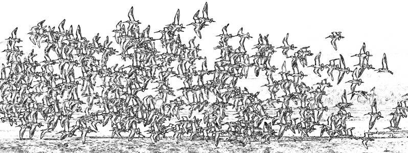 HIER EN DAAR ZIJN CONTOUREN VAN EEN VOGEL TE ZIEN ...