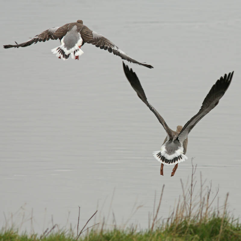 DIT KOPPEL GRAUWE GANS BLIJFT BIJ ONS; ZIJ TESTEN ALLEEN EVEN HUN CONDITIE,