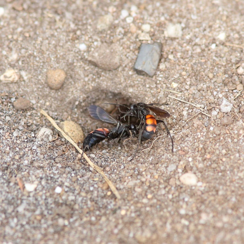 WEGWESPEN GRAVEN HIER EEN HOLETJE IN HET RELATIEF LOSSE ZAND.