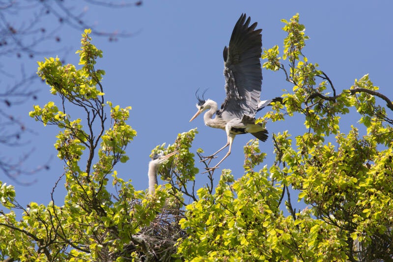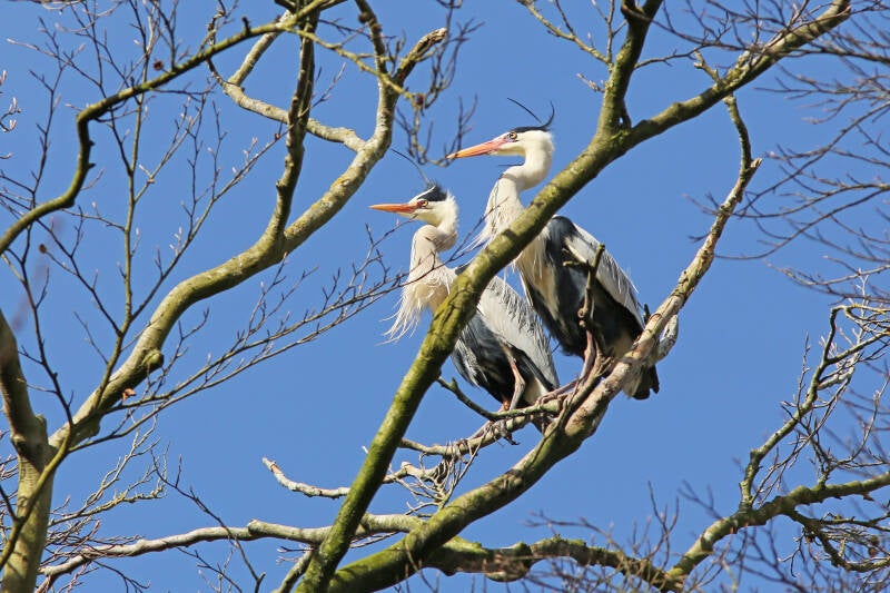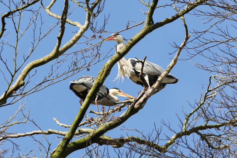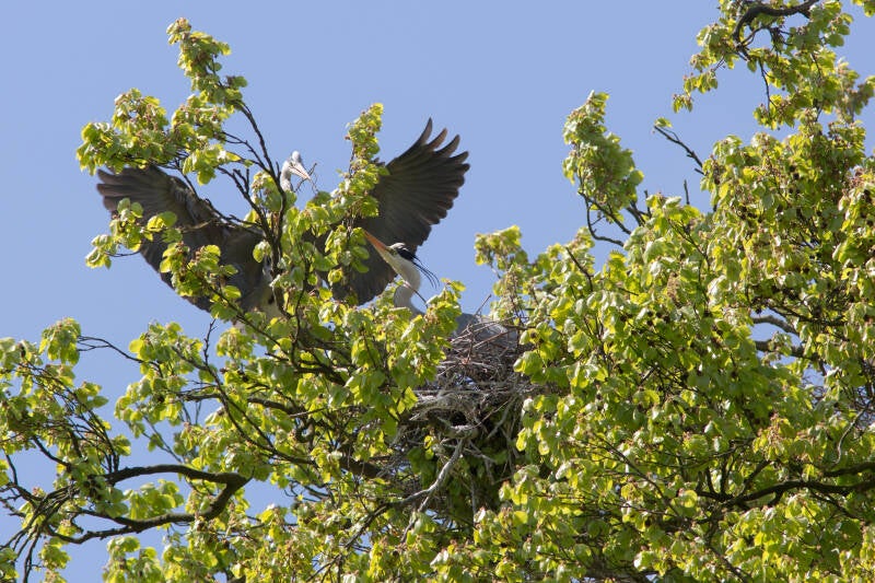 Het was begin maart, toen ik meerdere reigers met een takje zag vliegen, naar een plek waar heel hoge bomen staan.