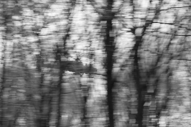 Toen ik intensief aan het speuren was naar iets geels, kwam er een enorme herrie op me af en die herrie bleef vlak naast me hangen: een Apache gevechtshelikopter. Alles trilde, behalve de heli, zoals je ziet. Er bleek ook nog een Chinook, zo'n zware transporthelikopter, in de buurt te zijn. Die wou ik ook wel van dichtbij zien en struikelde over ... ... een slijmzwam. TOEVAL BESTAAT en het bleek ook nog het juiste slijmzwammoment te zijn; die Chinook kon me verder gestolen worden. Het is 23 december.