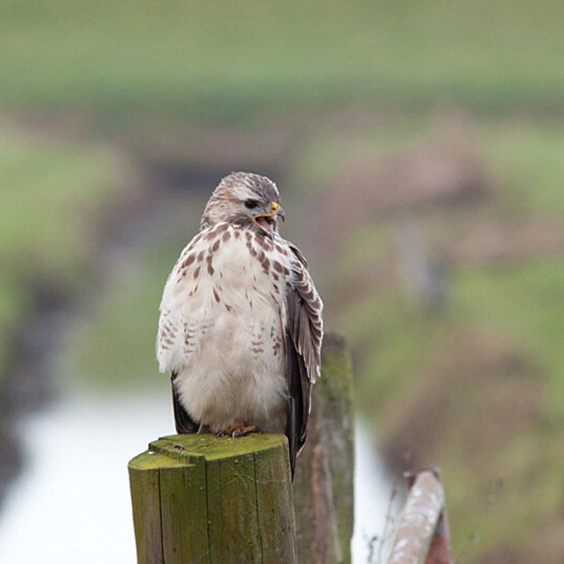 Twee Buizerds zaten, op een behoorlijke afstand van elkaar, aan de waterkant.