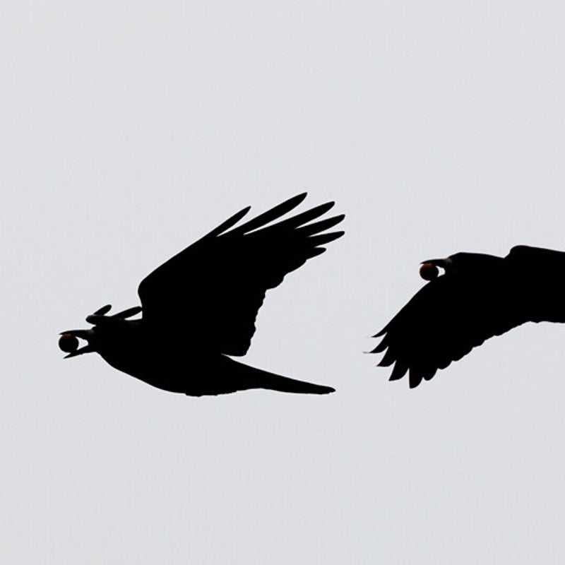 Bij grauw weer ga ik ook wel eens naar buiten, en dan is er bij slecht licht ook geen tekening in te krijgen, bij die kraaien. Och, ook zonder structuur zijn ze prachtig, en ze hadden er vandaag zin in, om te poseren (rustig vliegend, zwevend bijna).