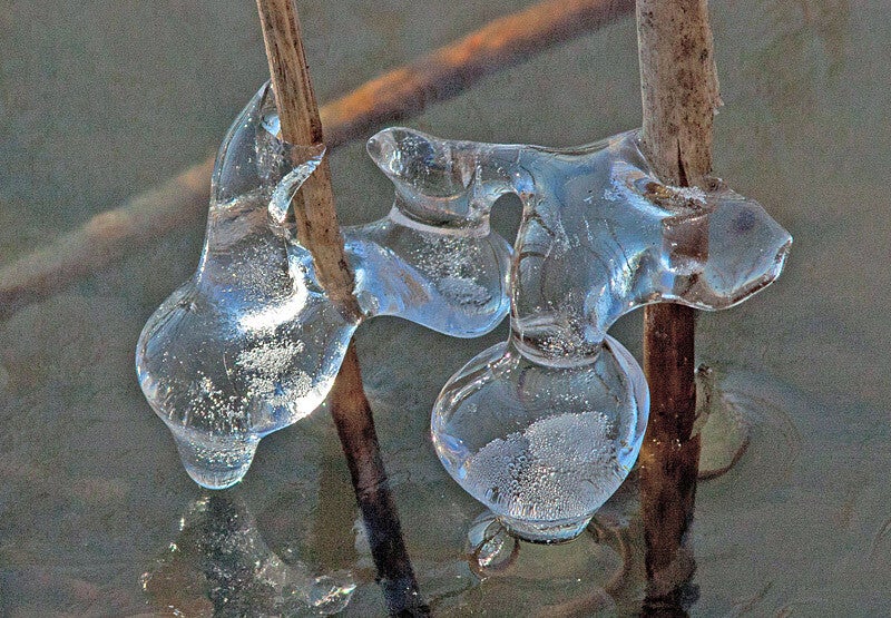 "Het masker aan de Wilgen gehangen" Deze ijssculptuur gevonden, daags na Carnaval.